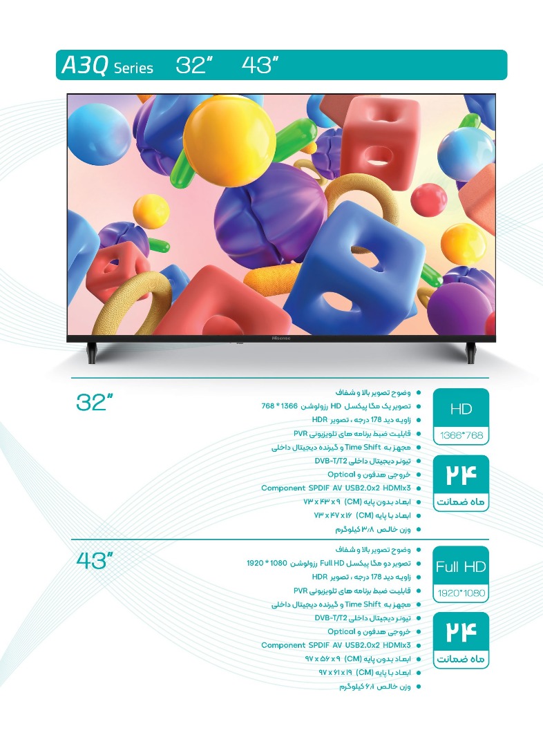 تلویزیون هایسنس مدل A3Q سایز 43 اینچ
