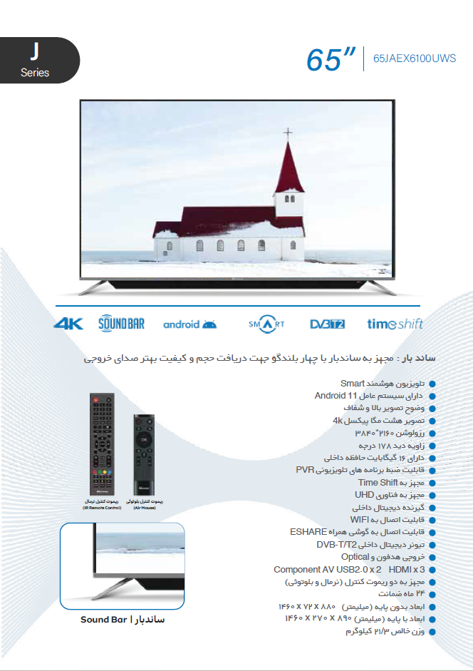 مشخصات تلویزیون LED بویمن 65 اینچ مدل 65JAEX6100UWS