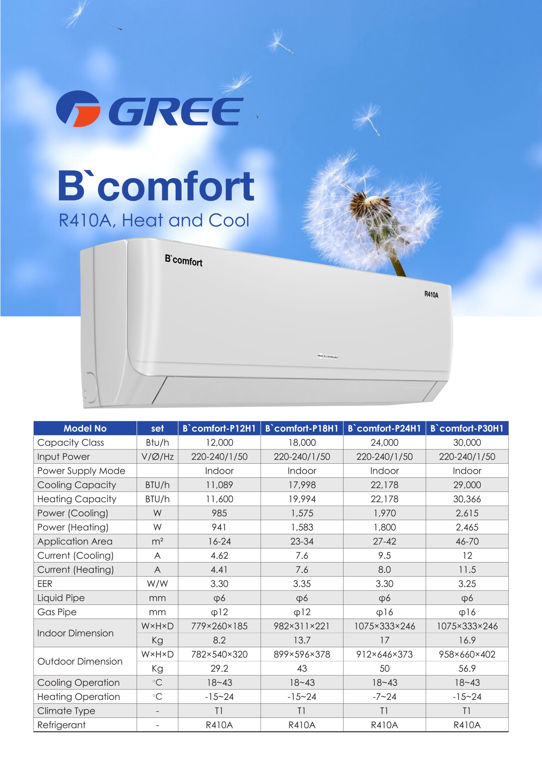 کولر گازی گری مدل B’Comfort P18H1 مجهز به کمپرسور روتاری دور ثابت است و از گاز مبرد R410A استفاده می‌کند. ظرفیت سرمایش ۱۸۰۰۰ BTU/h و ظرفیت گرمایش آن حدود ۱۷۶۰۰ BTU/h است که نشان از توان بالای دستگاه دارد. سیستم سرمایشی سریع (Fast Cooling) به شما این امکان را می‌دهد که تنها در چند دقیقه دمای محیط را به سطح دلخواه برسانید. همچنین در فصل زمستان می‌توانید از عملکرد گرمایش پرقدرت آن برای گرم‌کردن محیط استفاده کنید.